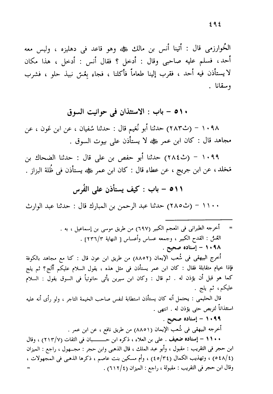1098- حَدثنا أَبُو نُعَيْمٍ، قَالَ: حَدثنا سُفْيَانُ، عَنِ ابْنِ عَوْنٍ، عَنْ مُجَاهِدٍ قَالَ: كَانَ ابْنُ عُمَرَ لاَ يَسْتَأْذِنُ عَلَى بُيُوتِ السُّوقِ.
