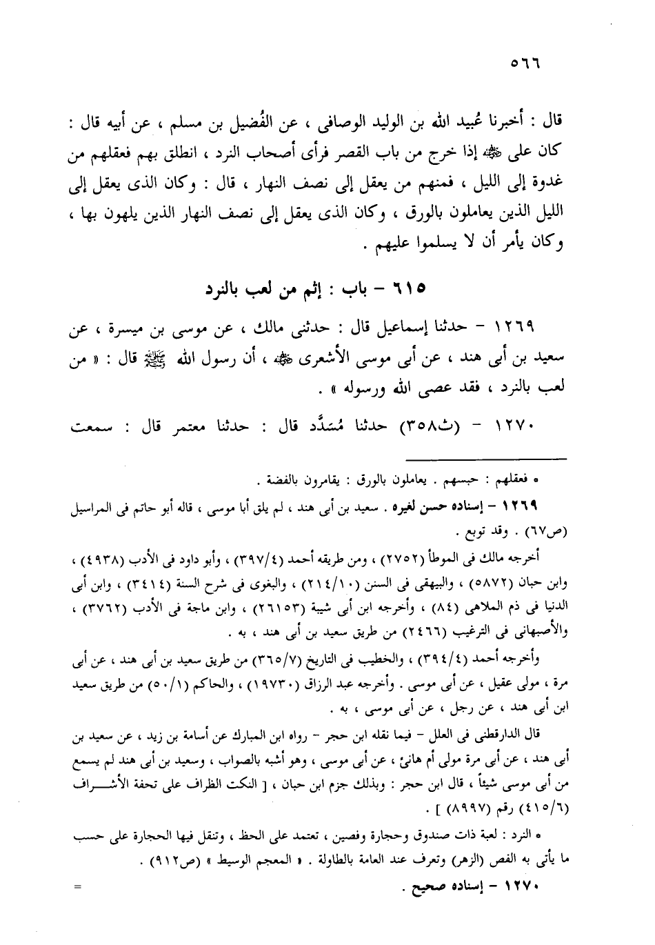 1269- حَدثنا إِسْمَاعِيلُ قَالَ: حَدَّثَنِي مَالِكٌ، عَنْ مُوسَى بْنِ مَيْسَرَةَ، عَنْ سَعِيدِ بْنِ أَبِي هِنْدَ، عَنْ أَبِي مُوسَى الأَشْعَرِيِّ، أَنَّ رَسُولَ اللهِ صَلى الله عَلَيهِ وسَلم قَالَ: مَنْ لَعِبَ بِالنَّرْدِ فَقَدْ عَصَى اللهَ وَرَسُولَهُ.