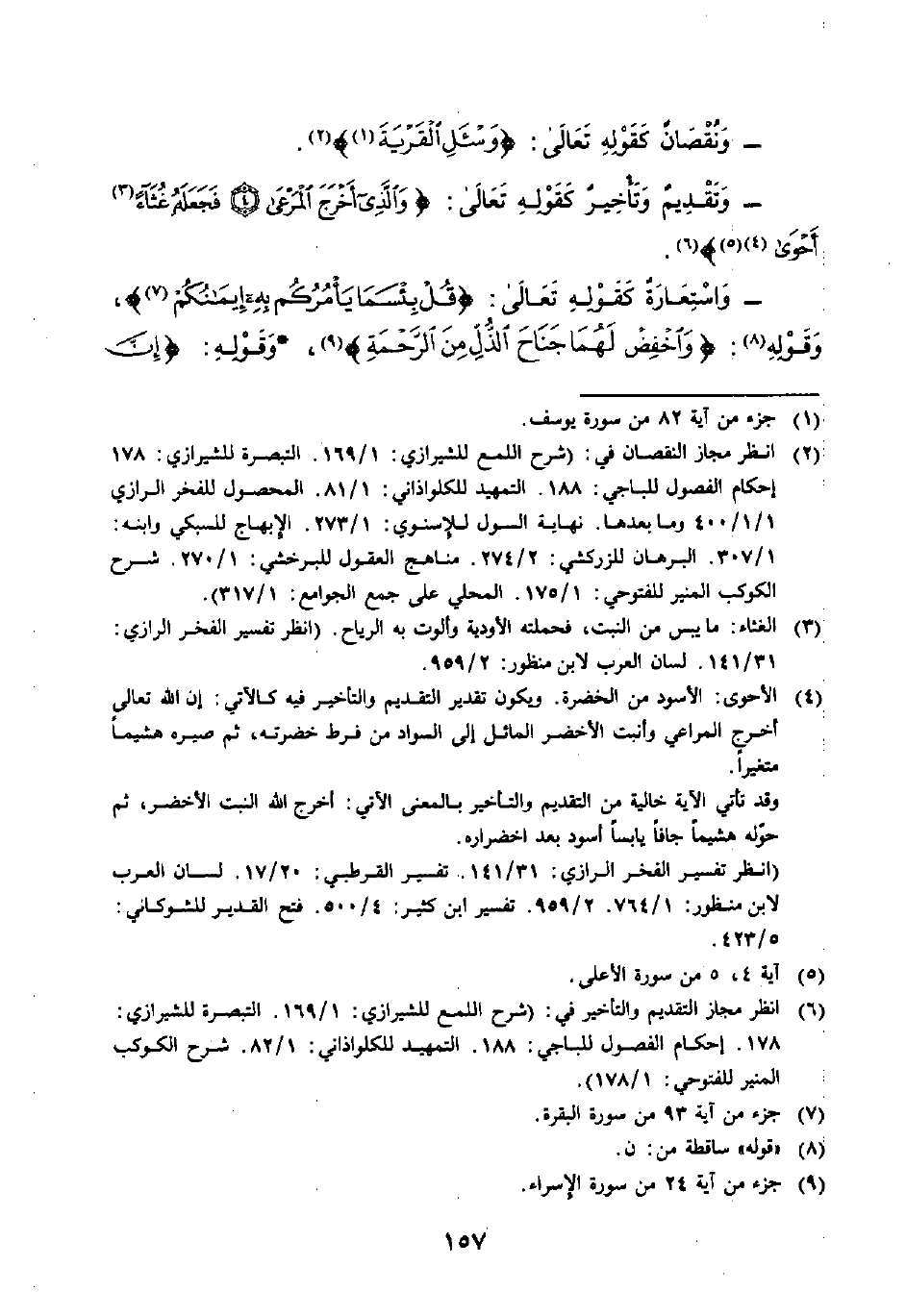 (٦) انظر مجاز التقديم والتأخير في: (شرح اللمع للشيرازي: ١/ ٦٩. التبصرة للشيرازي: ١٧٨. إحكام الفصول للباجي: ١٨٨. التمهيد للكلواذاني: ١/ ٨٢. شرح الكوكب المنير للفتوحي: ١/ ١٧٨).