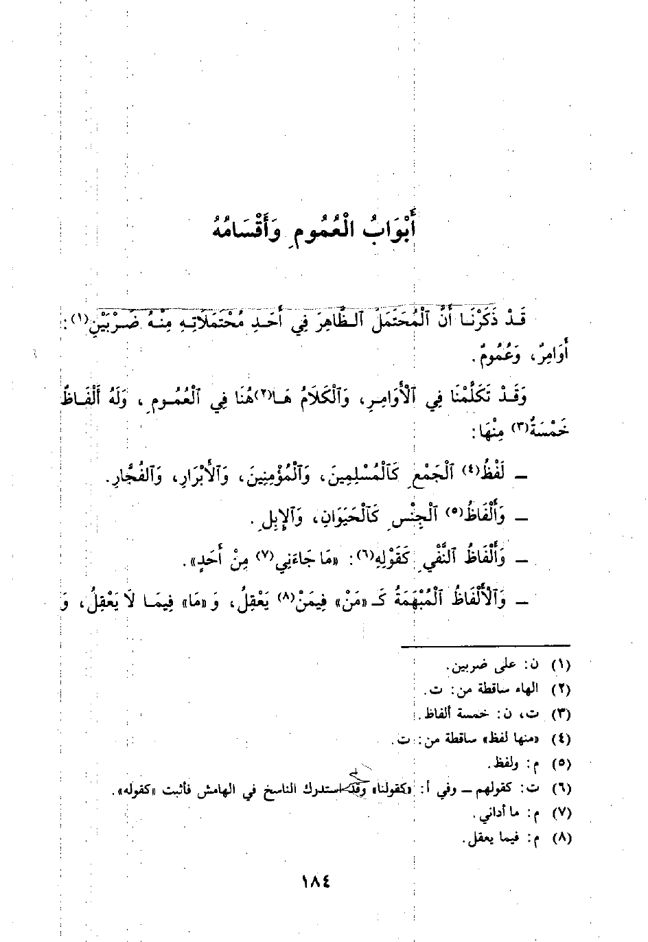 أَبْوَابُ الْعُمُومِ وَأَقْسَامُهُ