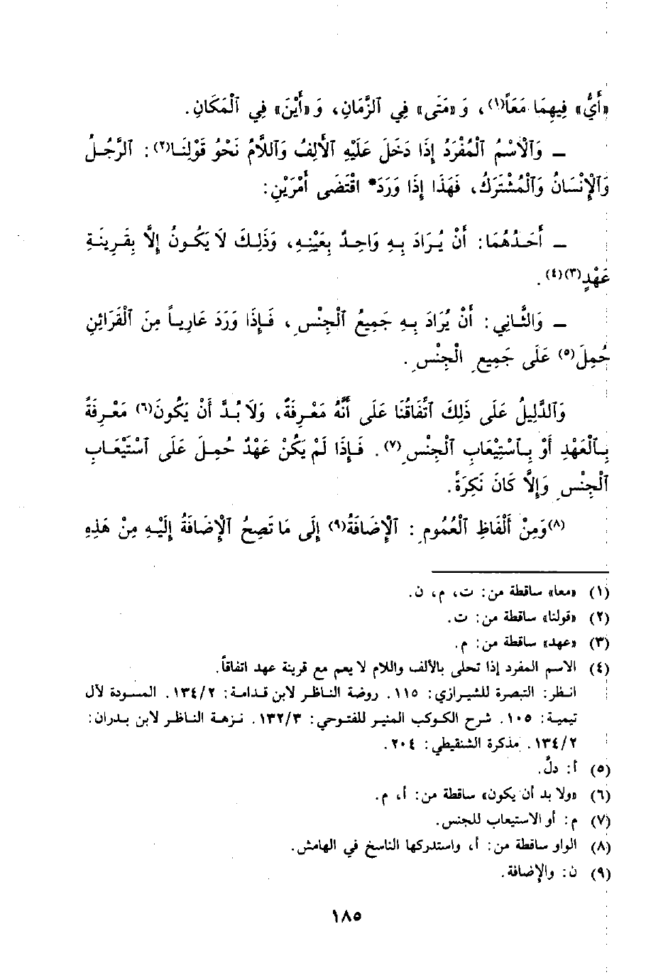 - وَالْاسْمُ الْمُفْرَدُ إِذَا دَخَلَ عَلَيْهِ الْأَلِفُ وَاللَّامُ نَحْوُ قَوْلِنَا (٢): الرَّجُلُ وَالْإِنْسَانُ وَالْمُشْرِكُ، فَهَذَا إِذَا وَرَدَ * اقْتَضَى أَمْرَيْنِ: