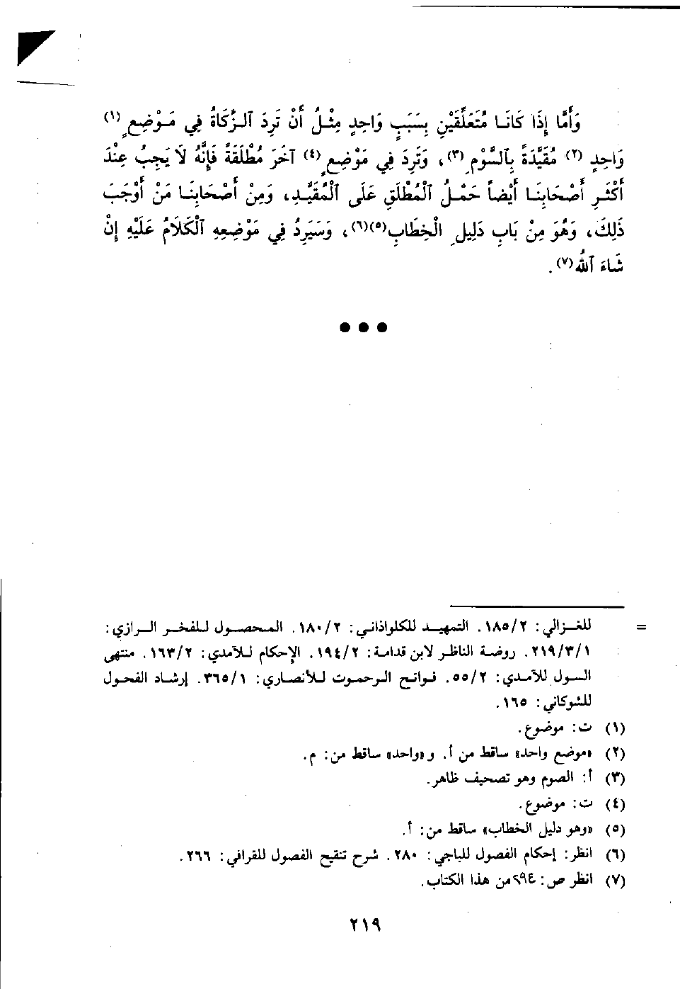 (٦) انظر: إحكام الفصول للباجي: ٢٨٠. شرح تتقيح الفصول للقرافي: ٢٦٦.
