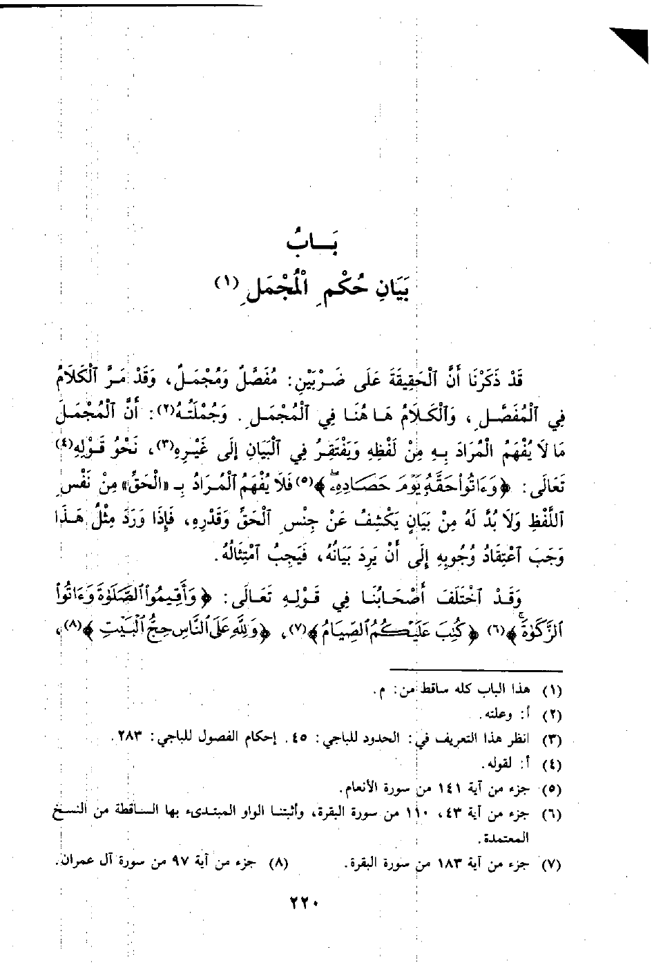 بَيَانِ حُكْمِ الْمُجْمَلِ (١)