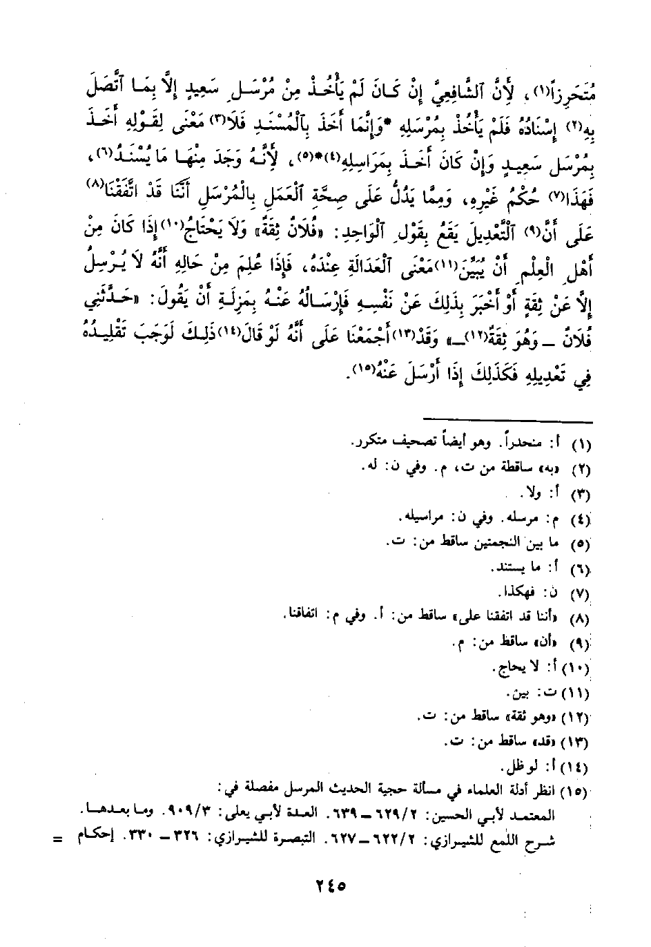 (١٥) انظر أدلة العلماء في مسألة حجية الحديث المرسل مفصلة في:
