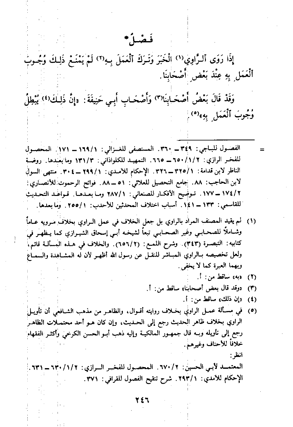 (١) لم يقيد المصنف المراد بالراوي بل جعل الخلاف في عمل الراوي بخلاف مرويه عامًا وشاملًا للصحابي وغير الصحابي تبعًا لشيخه أبي إسحاق الشيرازي كما يظهر في كتابيه: التبصرة (٣٤٣). وشرح اللمع: (٢/ ٦٥٦). والخلاف في هذه المسألة قائم، ولعل تخصيصه بالراوي المباشر للنقل عن رسول الله أظهر لأن له المشاهدة والسماع وبهما العبرة كما لا يخفى.