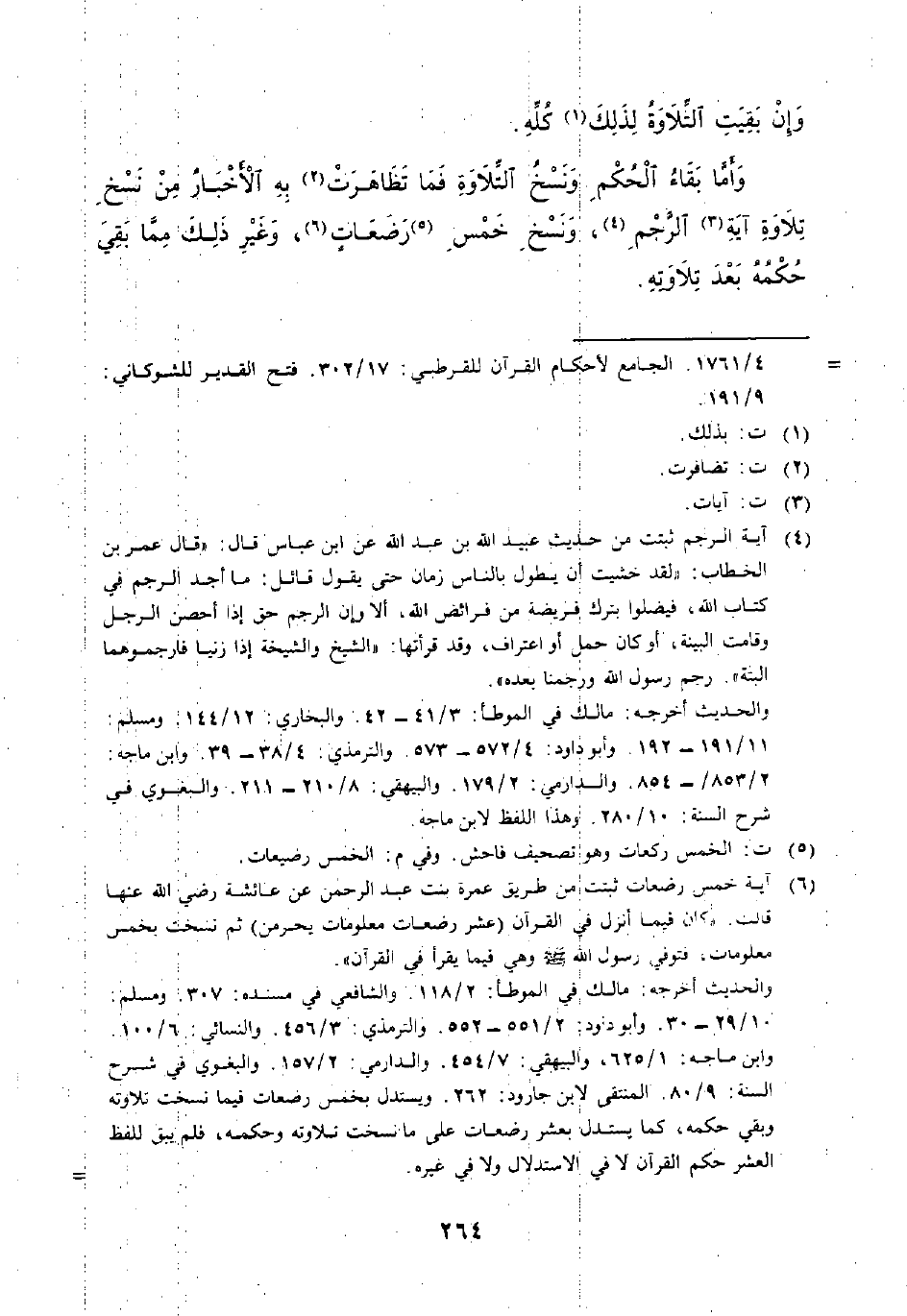 وَأَمَّا بَقَاءُ الْحُكْمِ وَنَسْخُ التِّلَاوَةِ فَمَا تَظَاهَرَتْ (٢) بِهِ الْأَخْبَارُ مِنْ نَسْخِ تِلَاوَةِ آيَةِ (٣) الرَّجْمِ (٤)، وَنَسْخِ خَمْسِ (٥) رَضَعَاتٍ (٦)، وَغَيْرِ ذَلِكَ مِمَّا بَقِيَ حُكْمُهُ بَعْدَ تِلَاوَتِهِ.