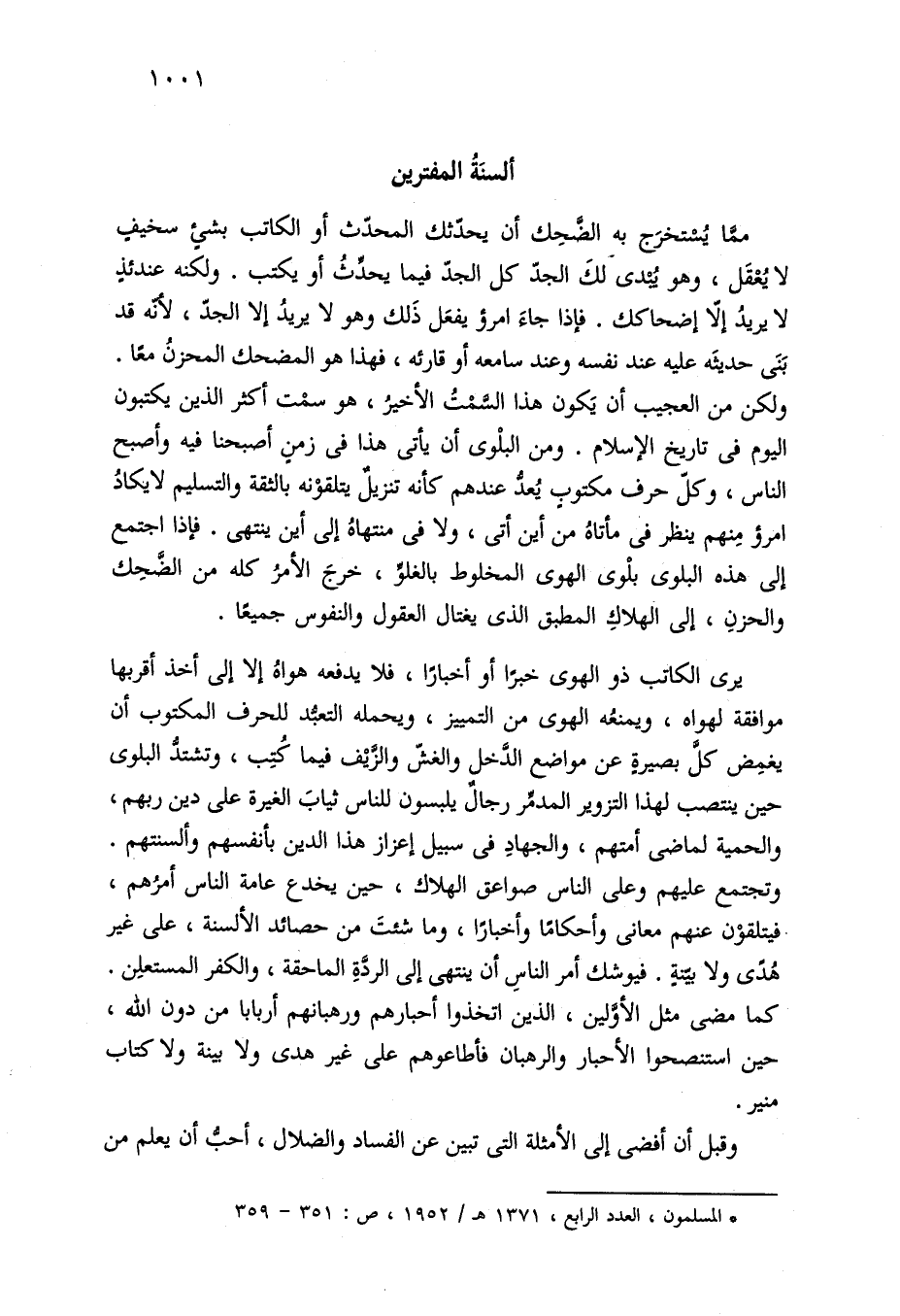 (*) المسلمون، العدد الرابع، 1371 هـ/ 1952، ص: 351 - 359