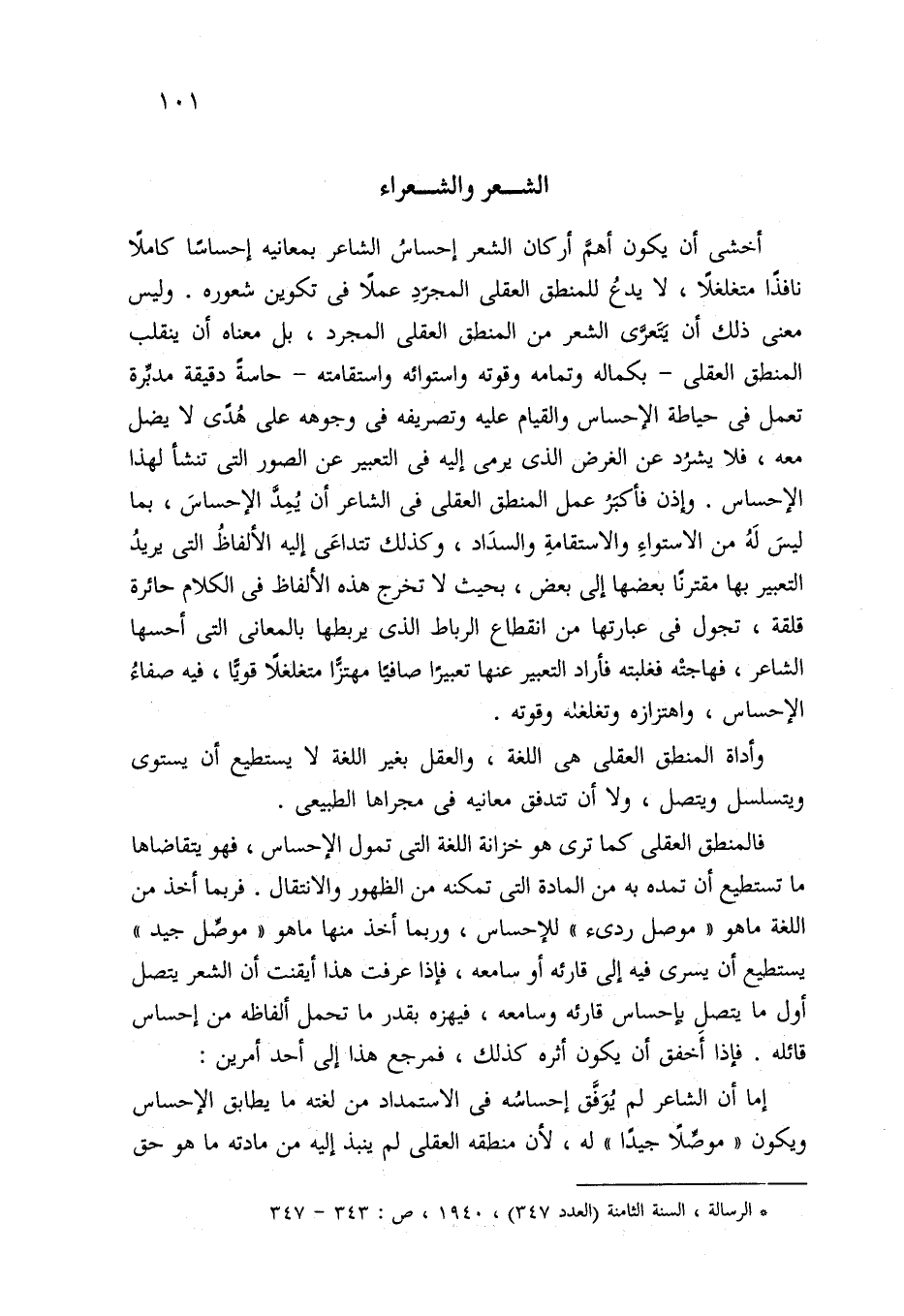 (*) الرسالة، السنة الثامنة (العدد 347)، 1940، ص: 343 - 347