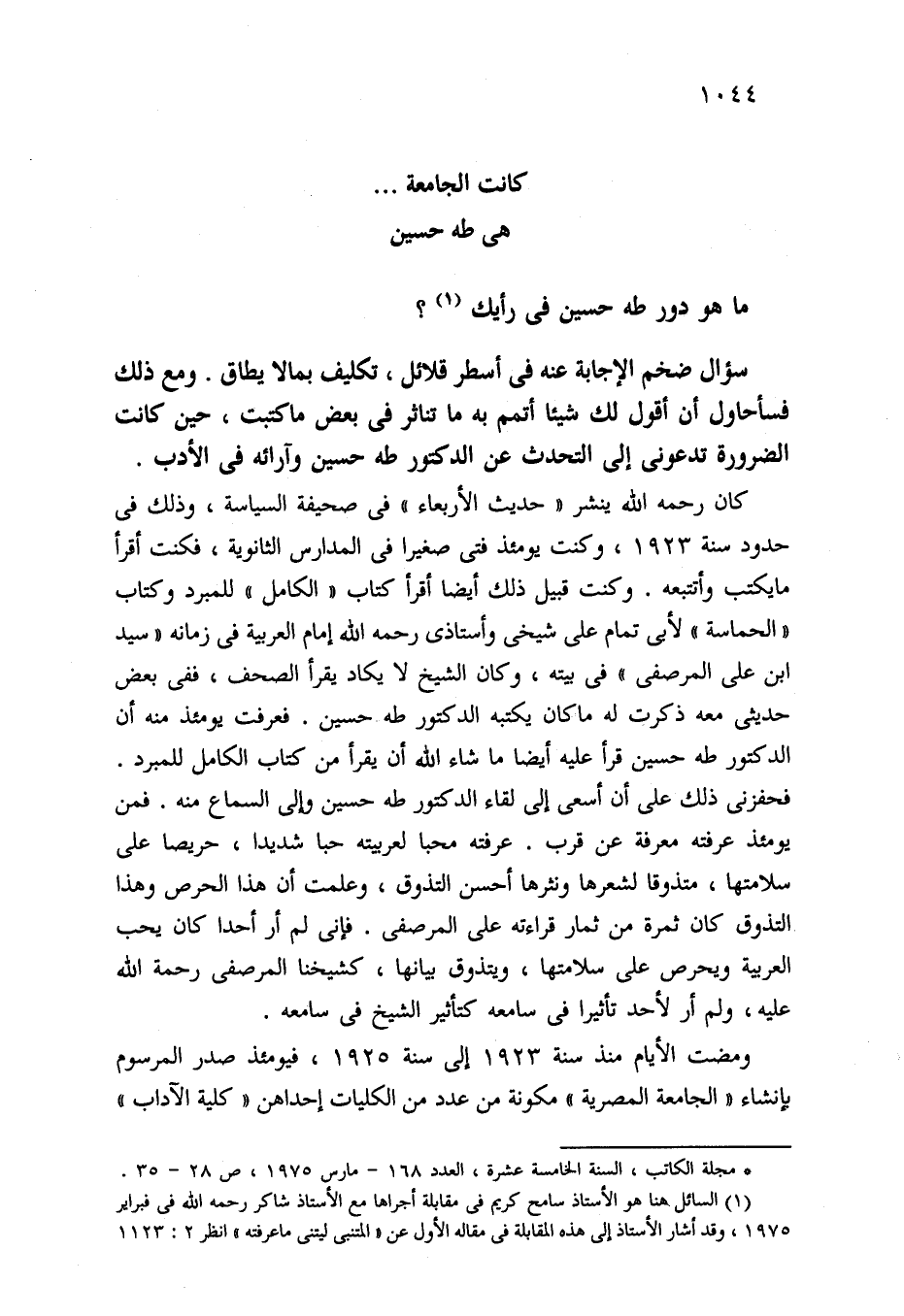 كانت الجامعة. . . هي طه حسين