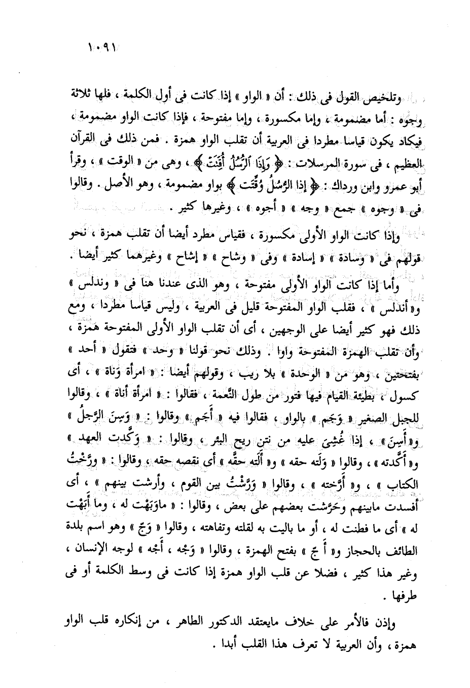 وإذن فالأمر على خلف ما يعتقد الدكتور الطاهر، من إنكاره قلب الواو همزة، وأن العربية لا تعرف هذا القلب أبدا.