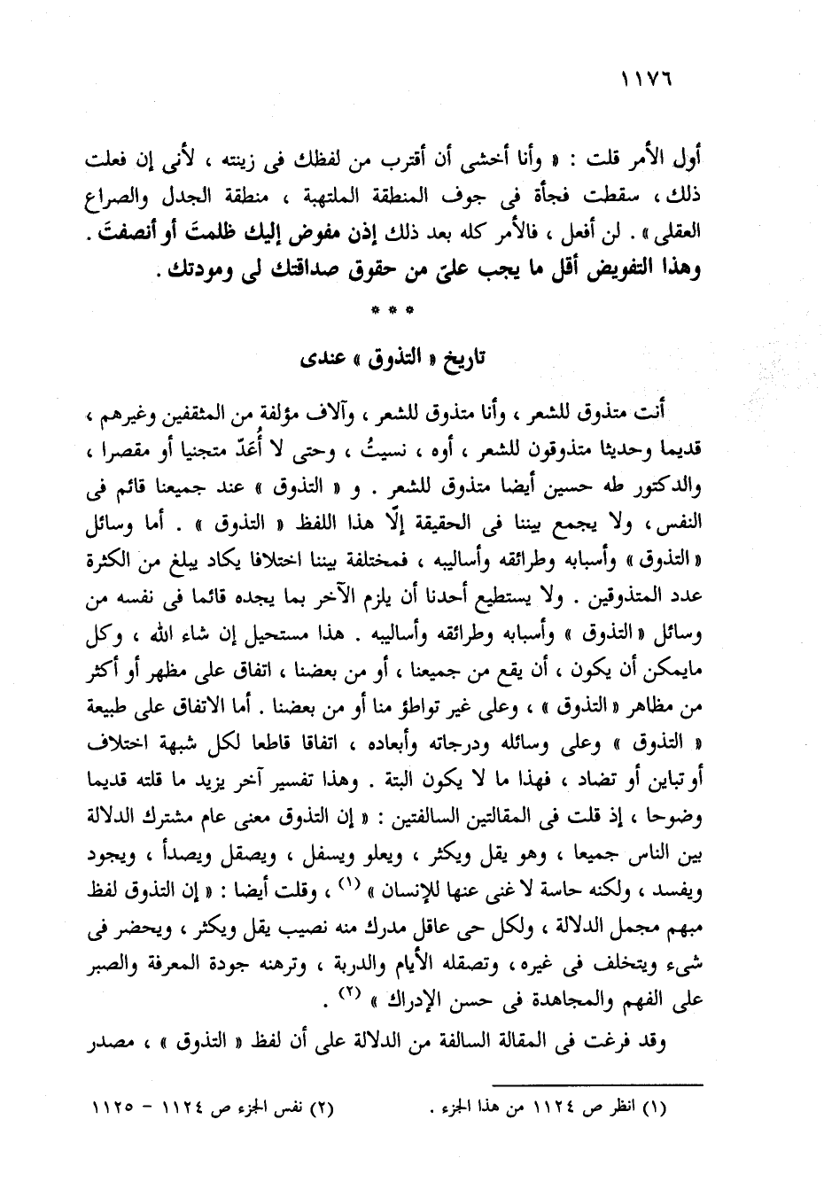 وقد فرغت في المقالة السالفة من الدلالة على أن لفظ "التذوق"، مصدر