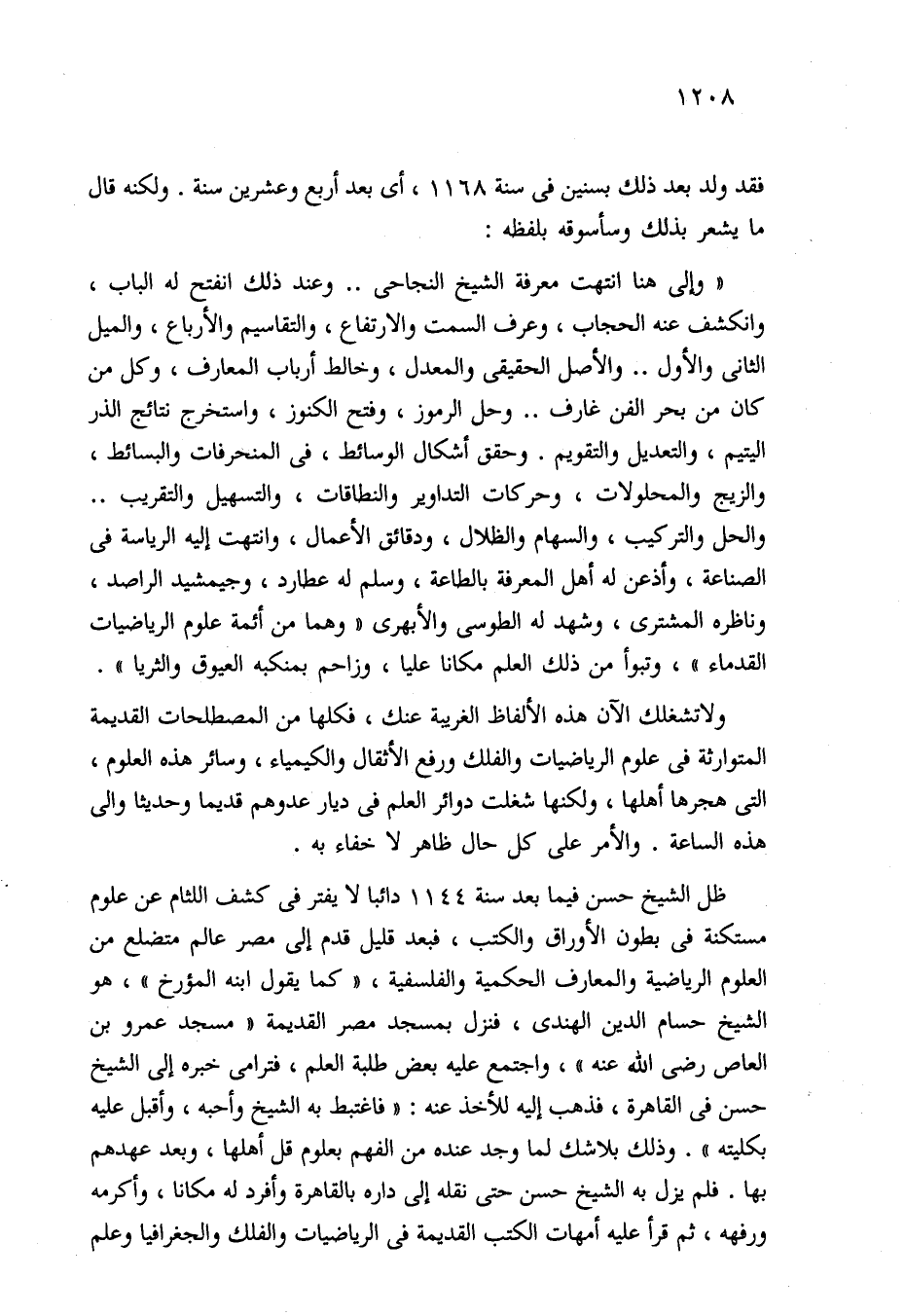ولا تشغلك الآن هذه الألفاظ الغريبة عنك، فكلها من المصطلحات القديمة المتوارثة في علوم الرياضيات والفلك ورفع الأثقال والكيمياء، وسائر هذه العلوم، التي هجرها أهلها، ولكنها شغلت دوائر العلم في ديار عدوهم قديما وحديثا وإلى هذه الساعة. والأمر على كل حال ظاهر لا خفاء به.