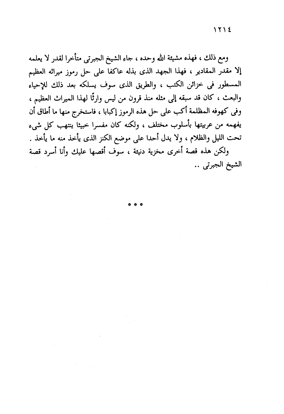ولكن هذه قصة أخرى مخزية دنيئة، سوف أقصها عليك وأنا أسرد قصة الشيخ الجبرتى. .