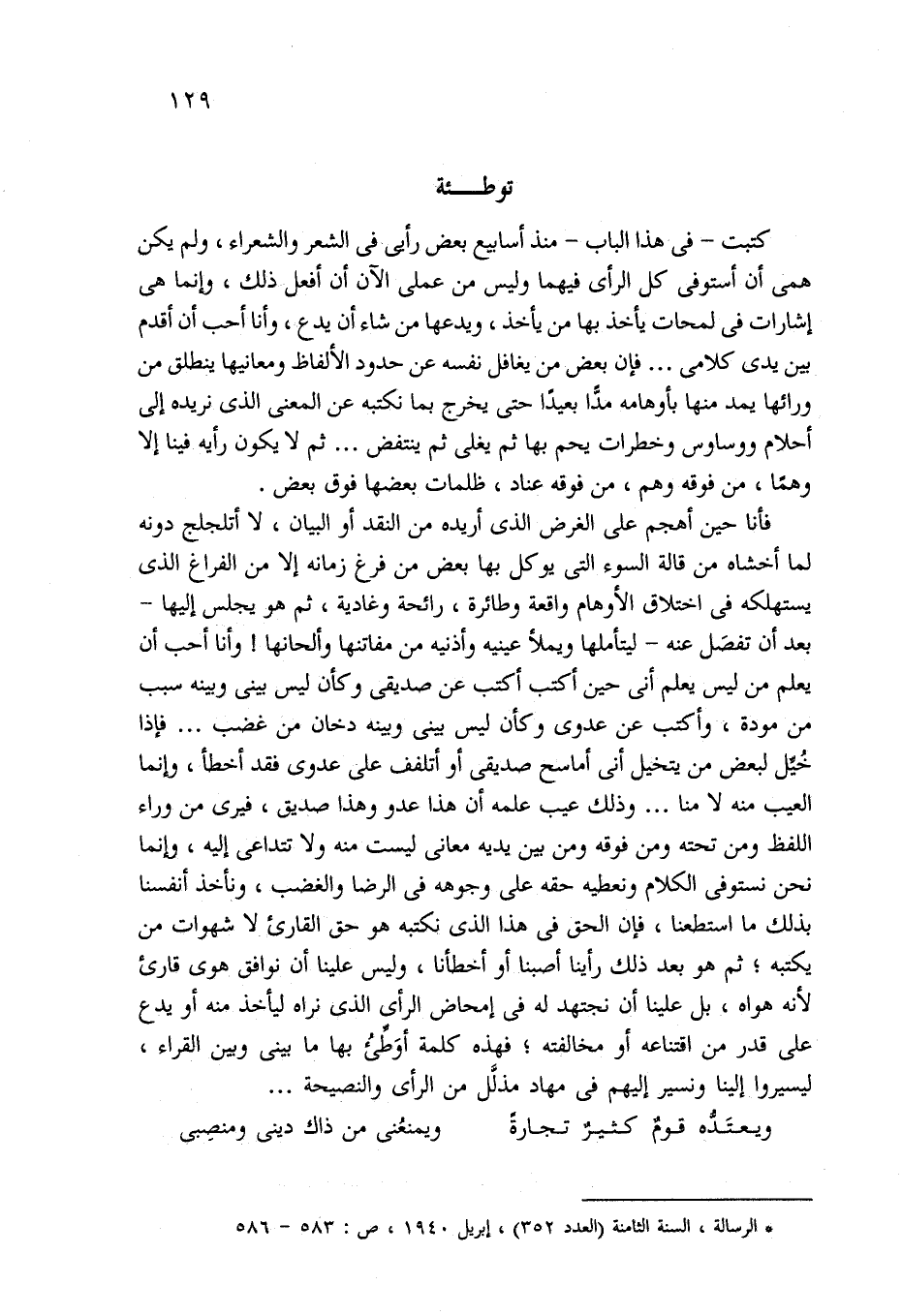 (*) الرسالة، السنة الثامنة (العدد 352)، إبريل 1940، ص: 583 - 586
