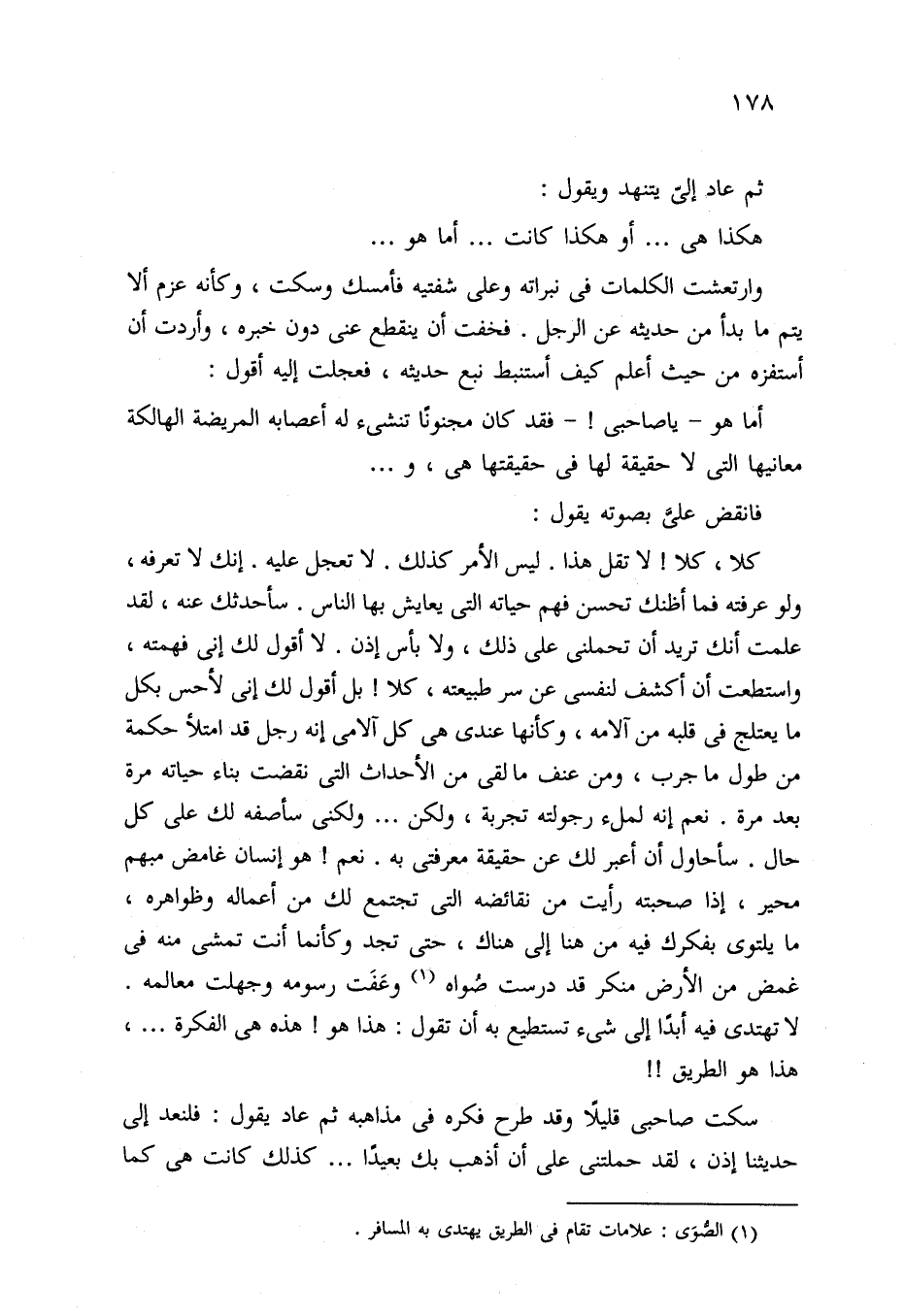 سكت صاحبي قليلًا وقد طرح فكره في مذاهبه ثم عاد يقول: فلنعد إلى حديثنا إذن، لقد حملتني على أن أذهب بك بعيدًا. . . كذلك كانت هي كما