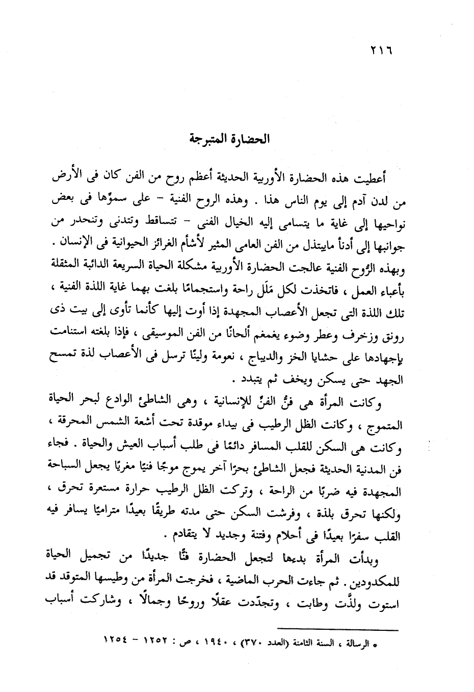 (*) الرسالة، السنة الثامنة (العدد 370)، 1940، ص: 1252 - 1254