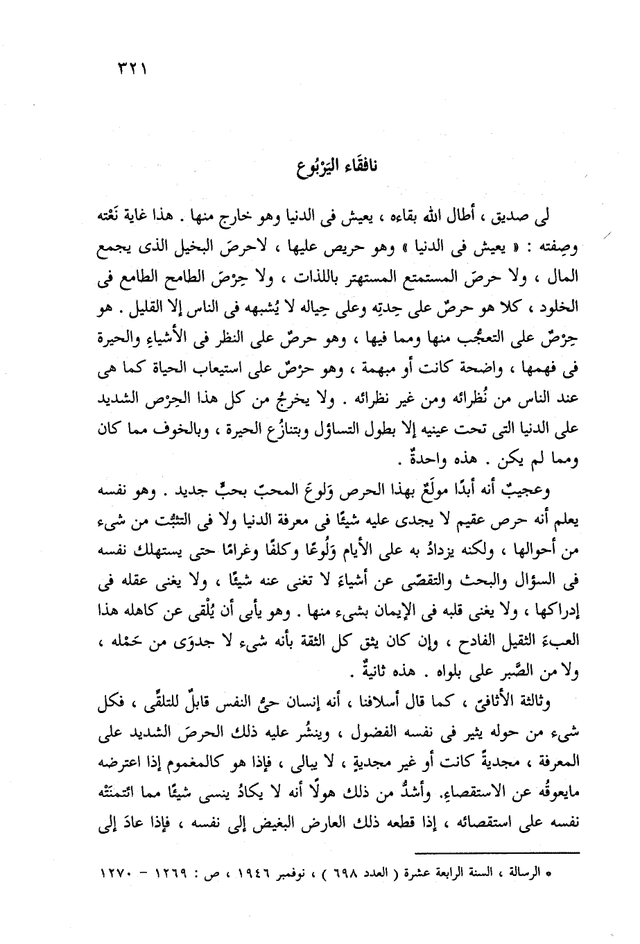 (*) الرسالة، السنة الرابعة عشرة (العدد 698)، نوفمبر 1946، ص: 1269 - 1270