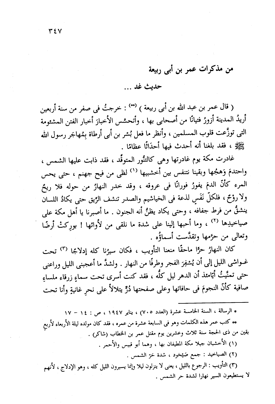 من مذكرات عمر بن أبي ربيعة حديث غد. . .
