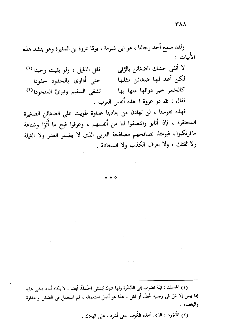 ولقد سمع أحد رجالنا، هو ابن شبرمة، يومًا عروة بن المغيرة وهو ينشد هذه الأبيات: