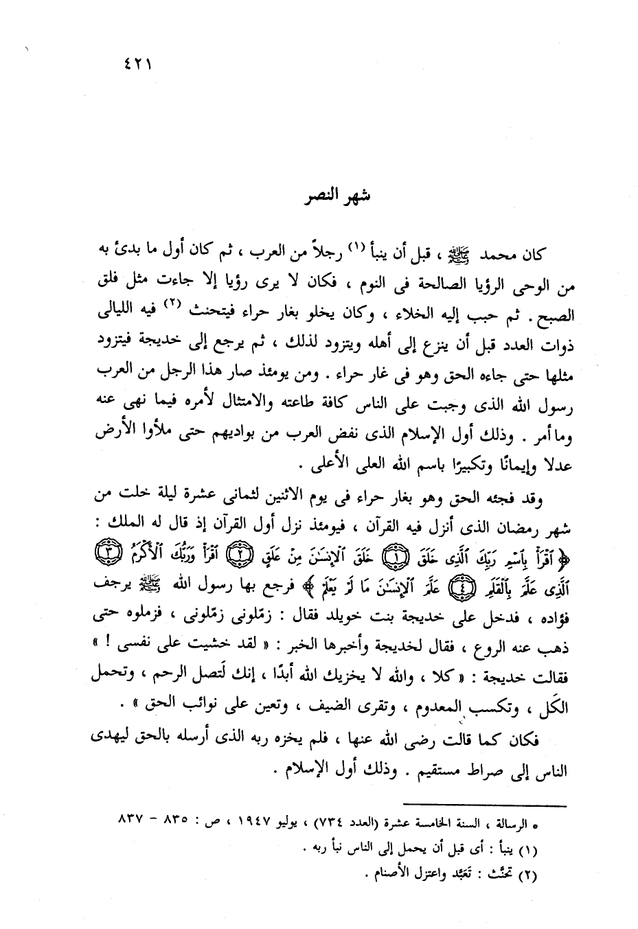 (*) الرسالة، السنة الخامسة عشرة (العدد 734)، يوليو 1947، ص: 835 - 837