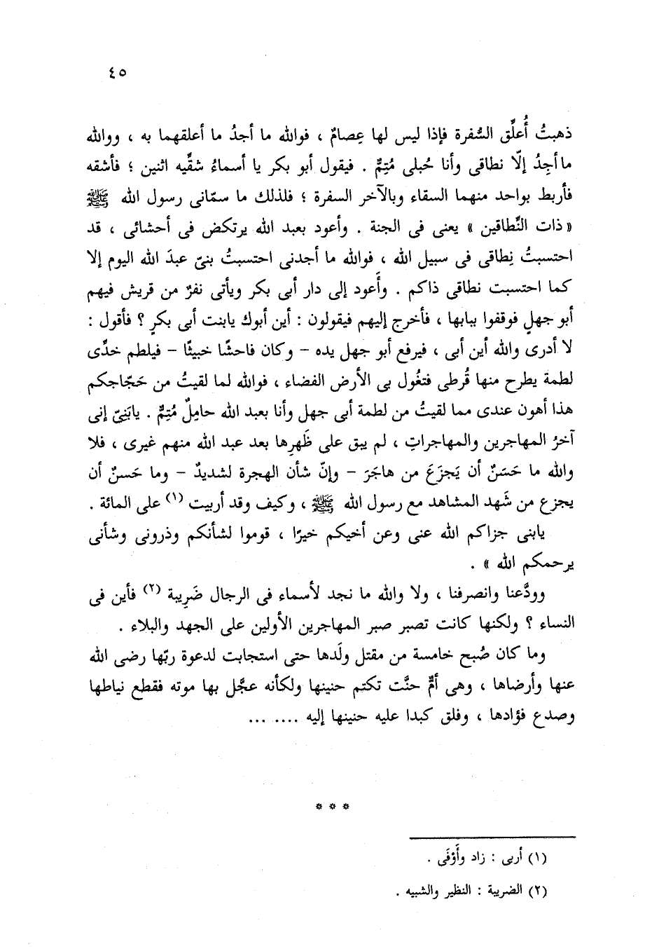 وودَّعنا وانصرفنا، ولا والله ما نجد لأسماء في الرجال ضَرِيبة (¬2) فأين في النساء؟ ولكنها كانت تصبر صبر المهاجرين الأولين على الجهد والبلاء.