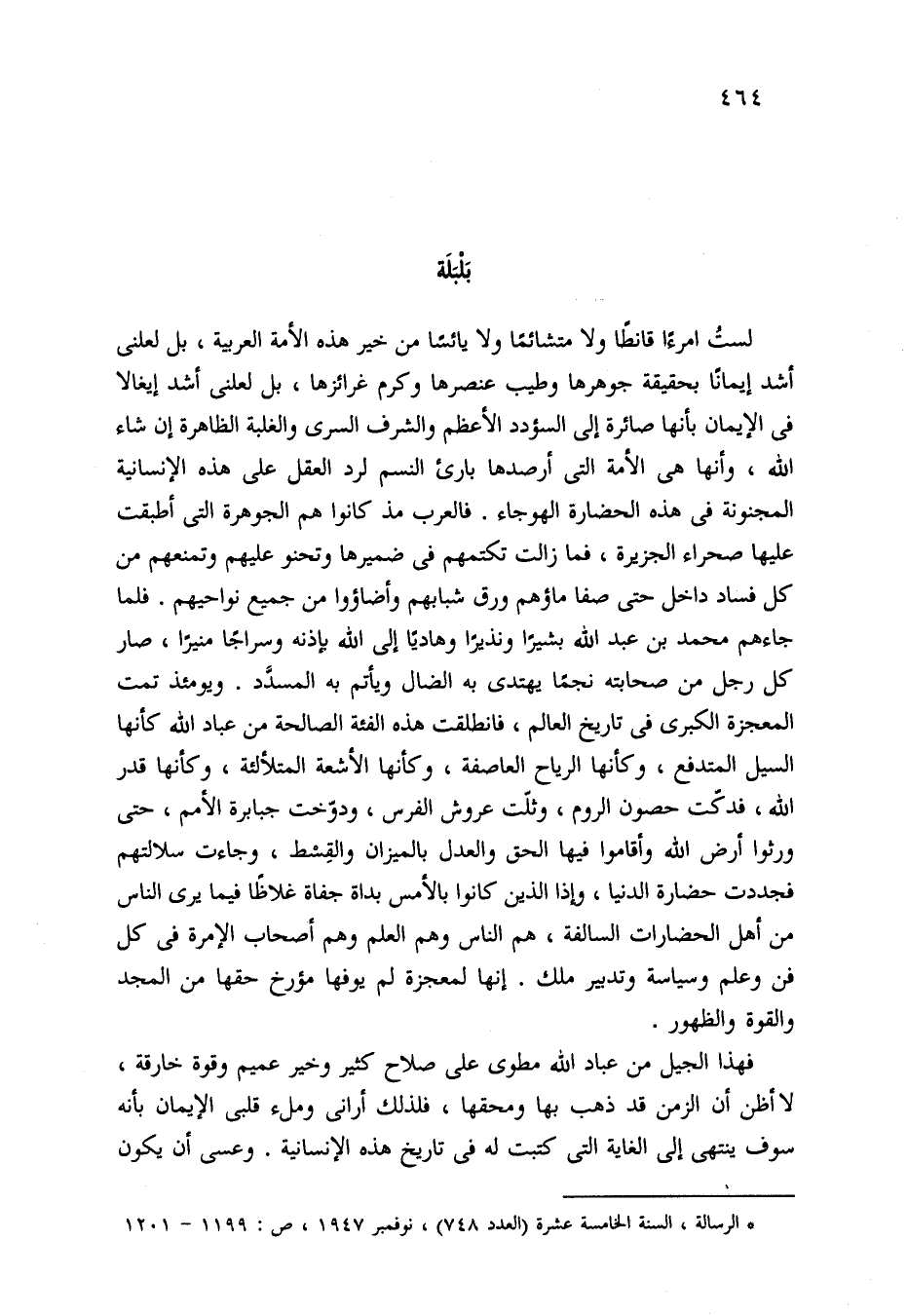 (*) الرسالة، السنة الخامسة عشرة (العدد 748)، نوفمبر 1947، ص: 1199 - 1201