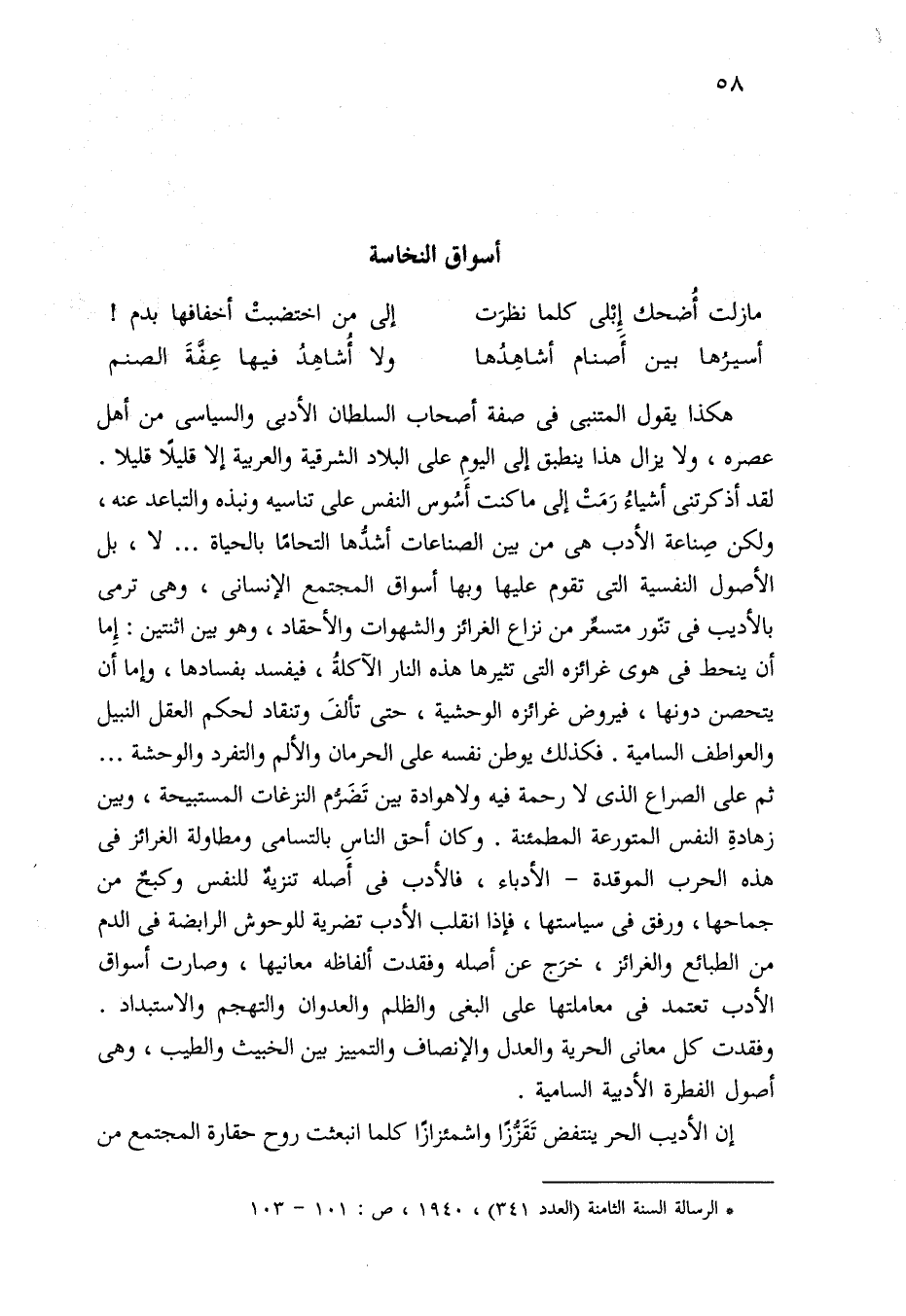 (*) الرسالة السنة الثامنة (العدد 341)، 1940، ص: 101 - 103