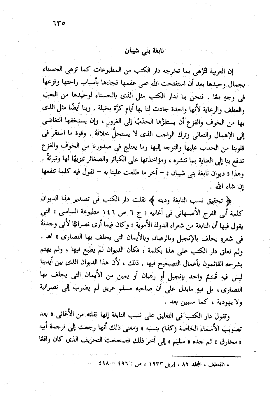 (*) المقتطف، المجلد 82، إبريل 1933، ص: 496 - 498