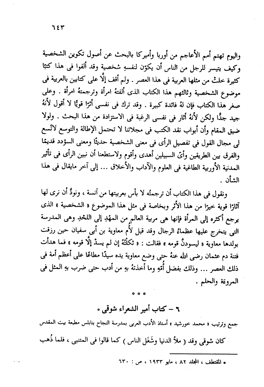 (*) المقتطف، المجلد 82، مايو 1933، ص: 630