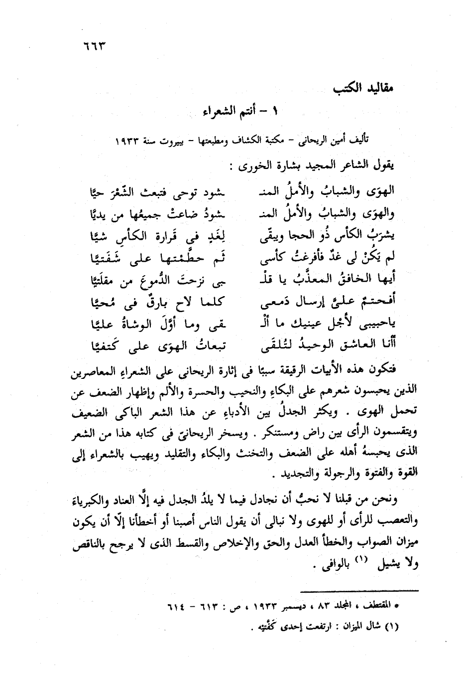 (*) المقتطف، المجلد 83، ديسمبر 1933 , ص: 613 - 614