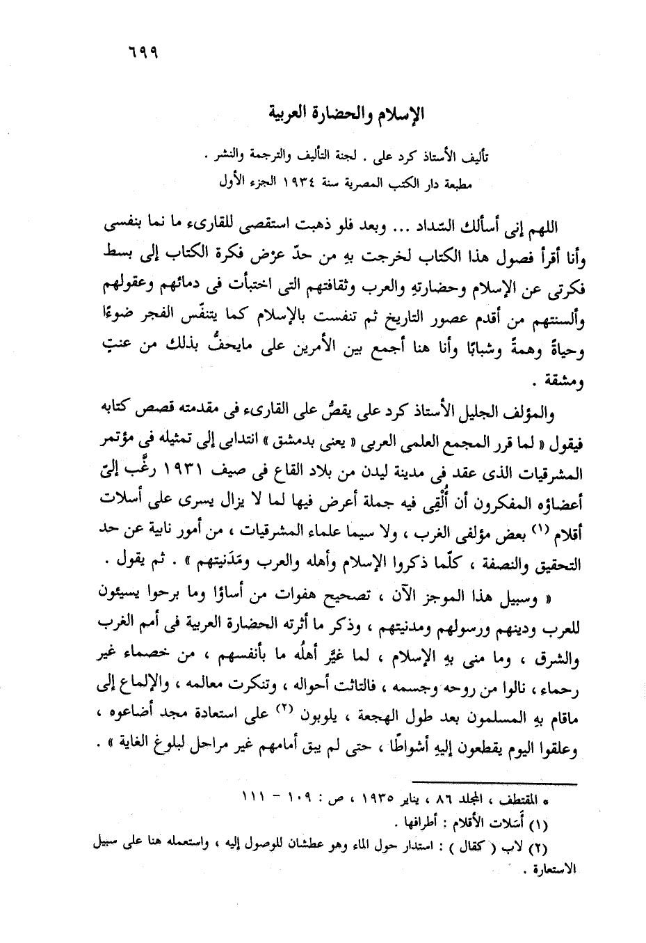 (*) المقتطف، المجلد 86، يناير 1935، ص: 109 - 111