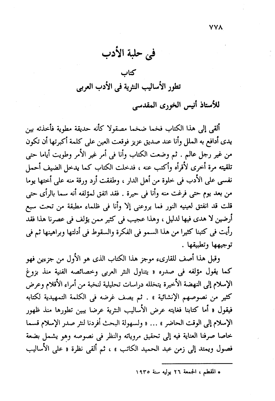 (*) المقطم، الجمعة 26 يوليه سنة 1935