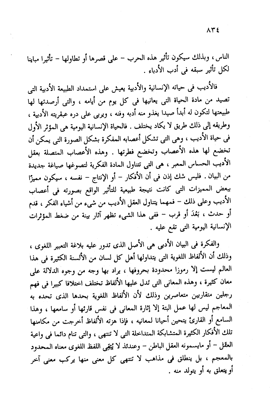 الناس، وبذلك سيكون ثأثير هذه الحرب -على قصرها أو تطاولها- تأثيرا مباينا لكل تأثير سبقه في أدب الأدباء.