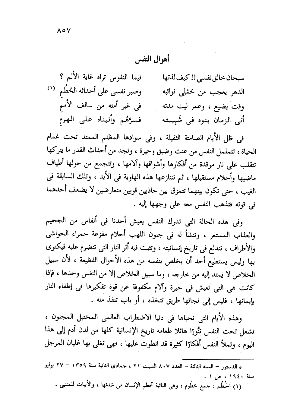 (*) الدستور -السنة الثالثة- العدد 807 السبت 21، جمادى الثانية سنة 1359 - 27 يوليو سنة 1940، ص 1.