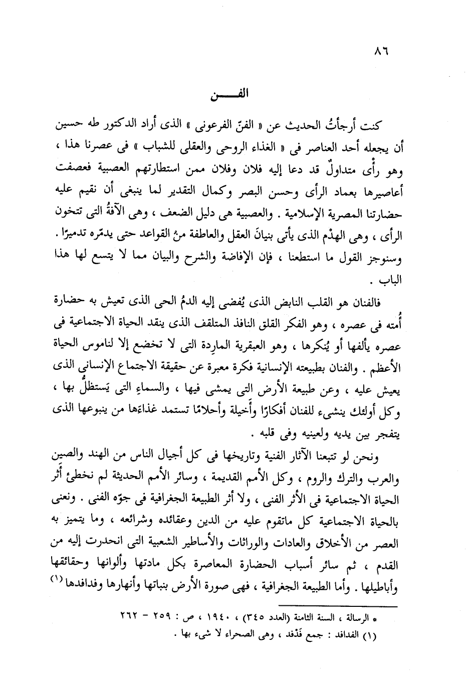 (*) الرسالة، السنة الثامنة (العدد 345)، 1940، ص: 259 - 262