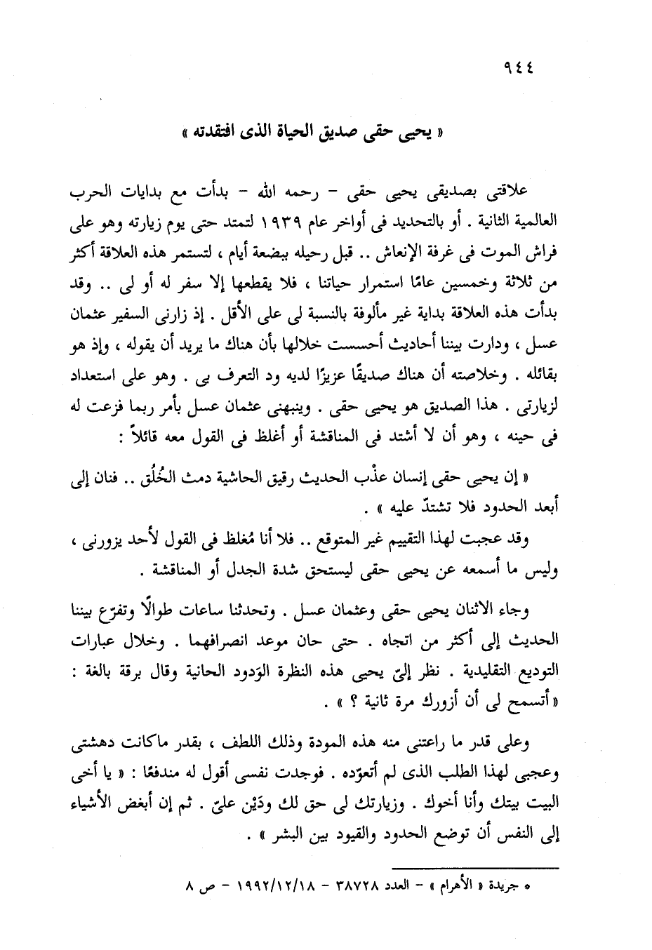 " يحيى حقي صديق الحياة الذي افتقدته"