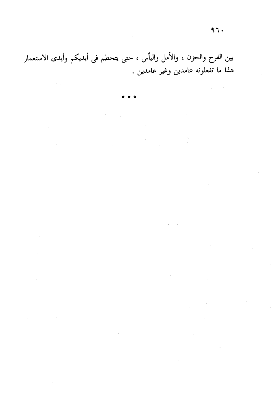 بين الفرح والحزن، والأمل واليأس، حتى يتحطم في أيديكم وأيدى الاستعمار هذا ما تفعلونه عامدين وغير عامدين.