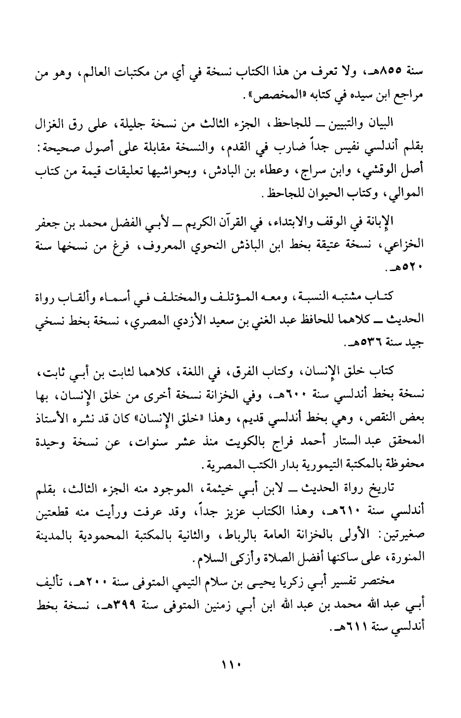 اندلسي سنة 610 هـ، وهذا الكتاب عزيز جداً، وقد عرفت ورايت منه قطعتين