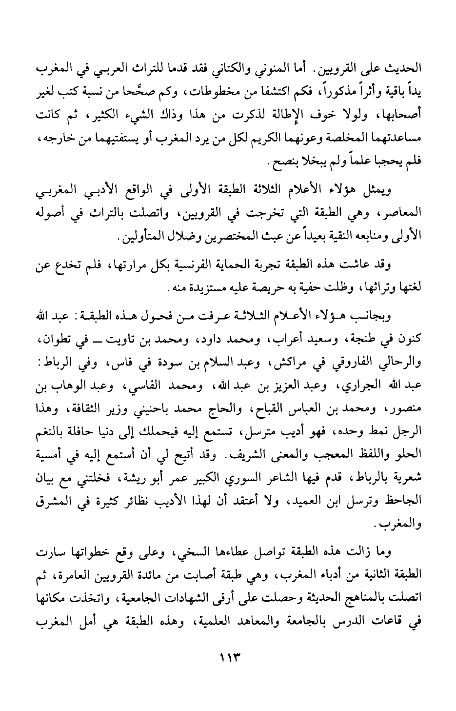 المعاصر، وهي الطبفة التي تخرجت في القرويين، واتصلت بالتراث في أصوله