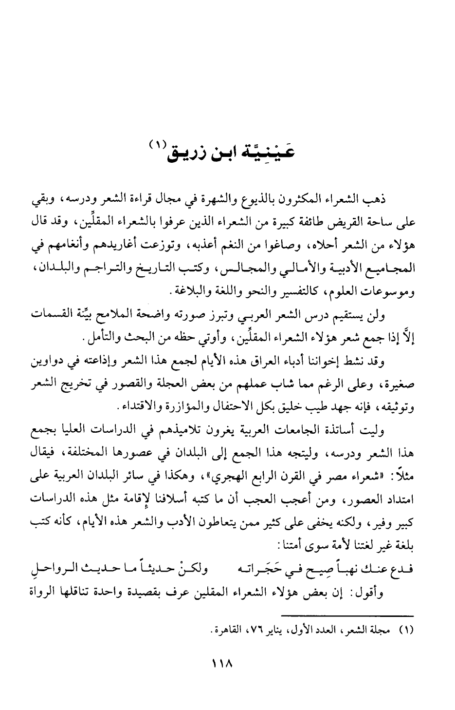 إلاَّ إذا جمع شعر هؤلاء الشعراء المقلِّين، وأوتي حظه من البحث والتأمل.