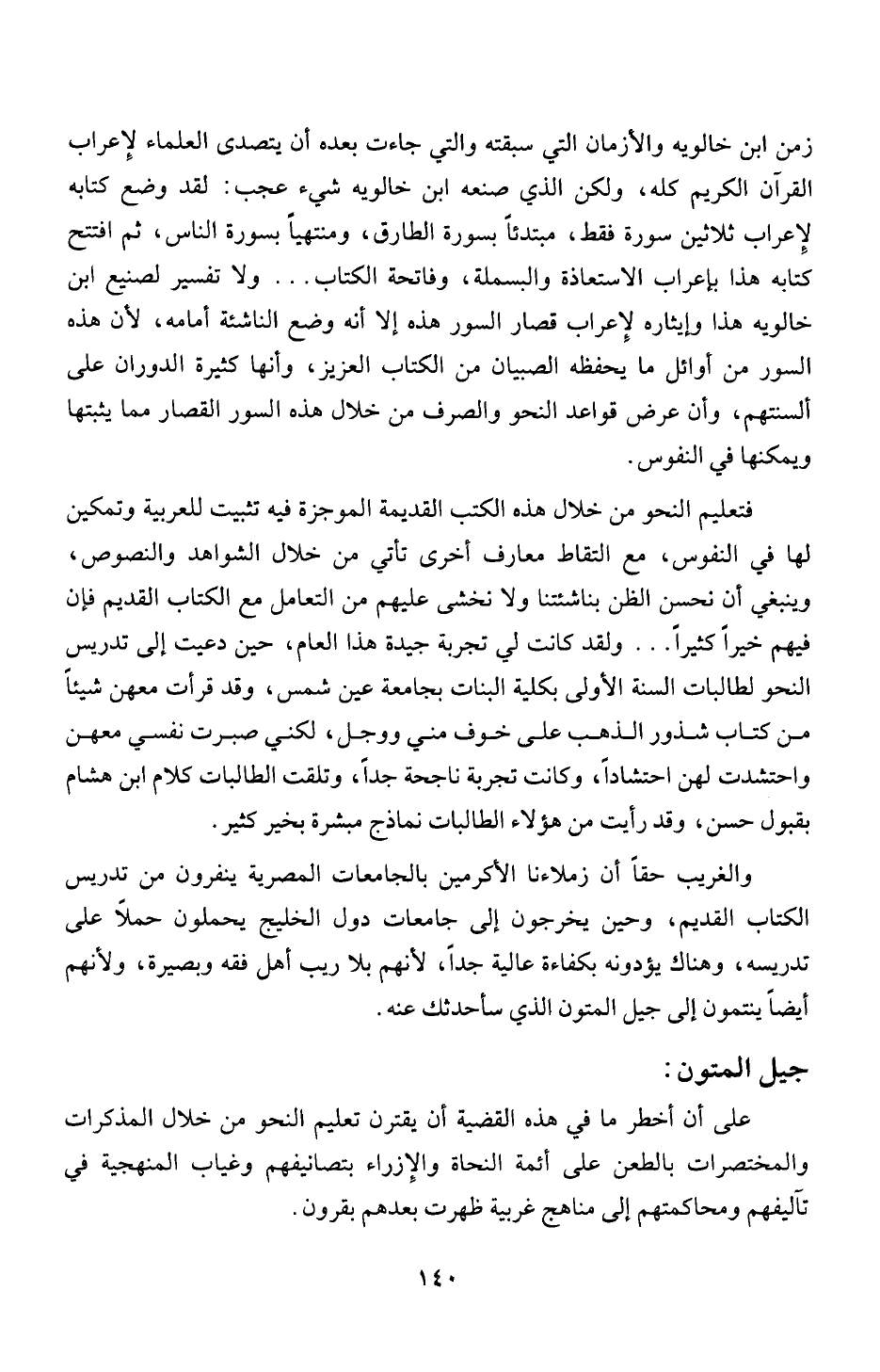 على أن اخطر ما في هذه القضية أن يقترن تعليم النحو من خلال المذكرات