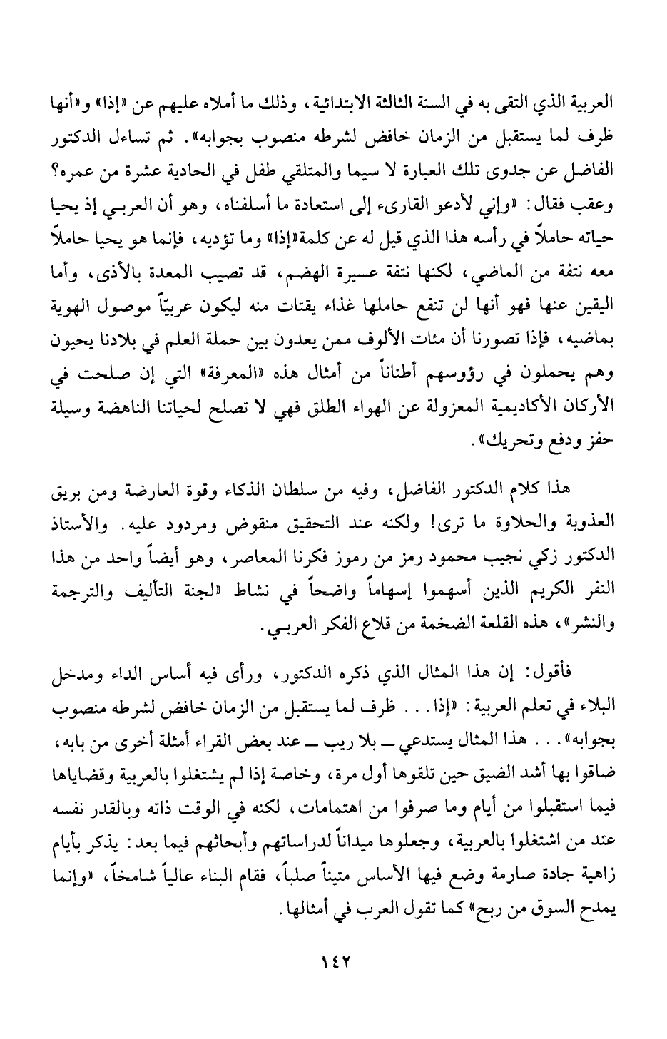 العربية الذي التقى به في السنة الثالثة الابتدائية، وذلك ما أملاه عليهم عن " إذا" و" أنها