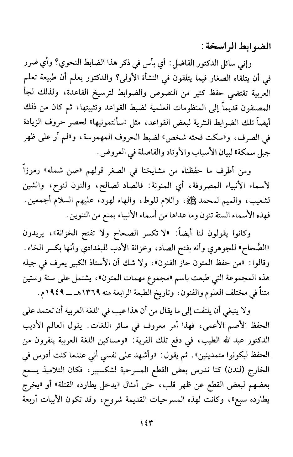 وإني سائل الدكتور الفاضل: أي بأس في ذكر هذا الضابط النحوي؟ وأي ضرر
