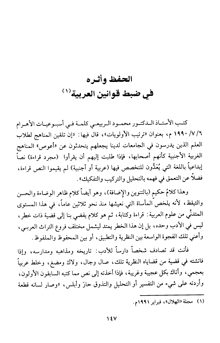 (1) مجلة "الهلال"، فبرا ير 1 9 9 1 م.