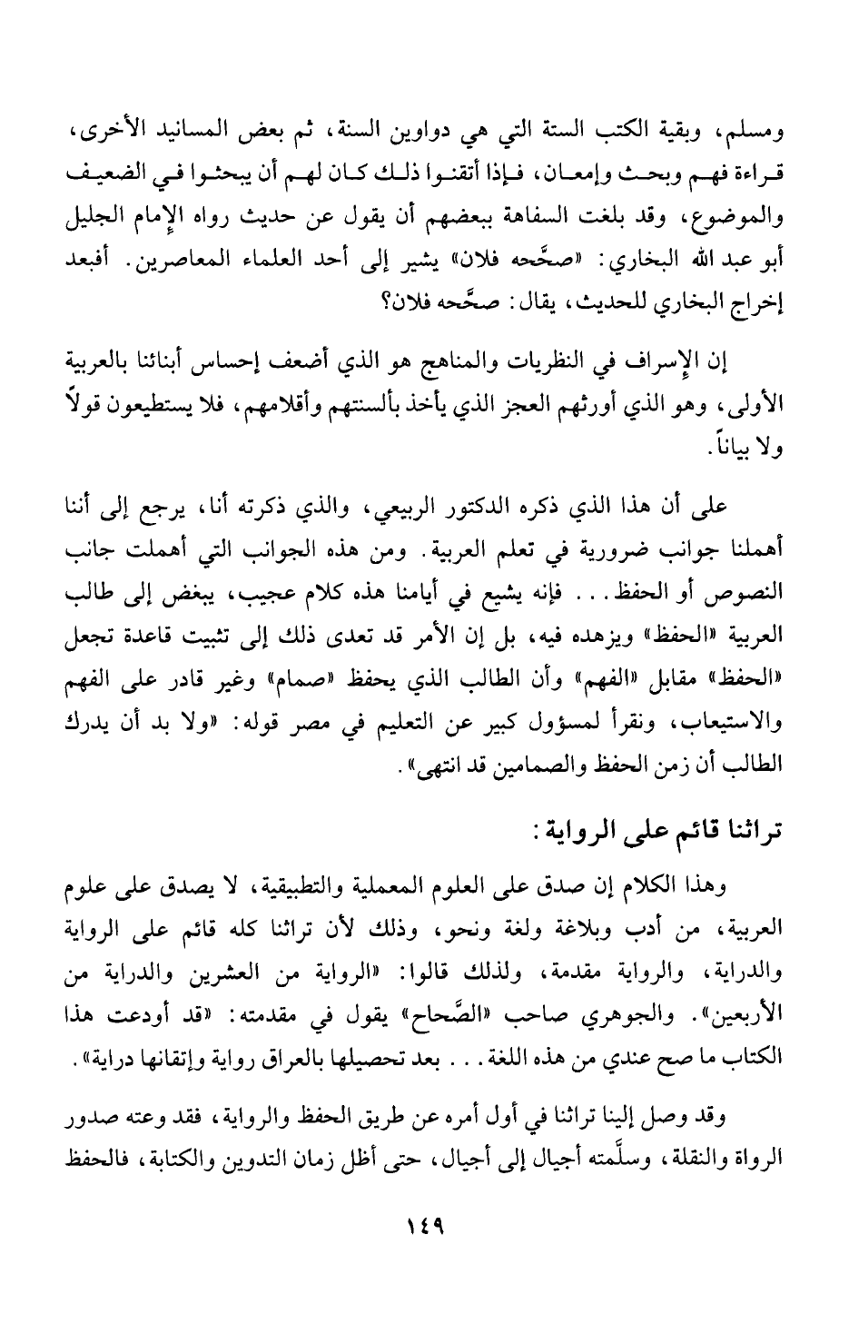 العربية، من أدب وبلاغة ولغة ونحو، وذلك لأن تراثنا كله قائم على الرواية