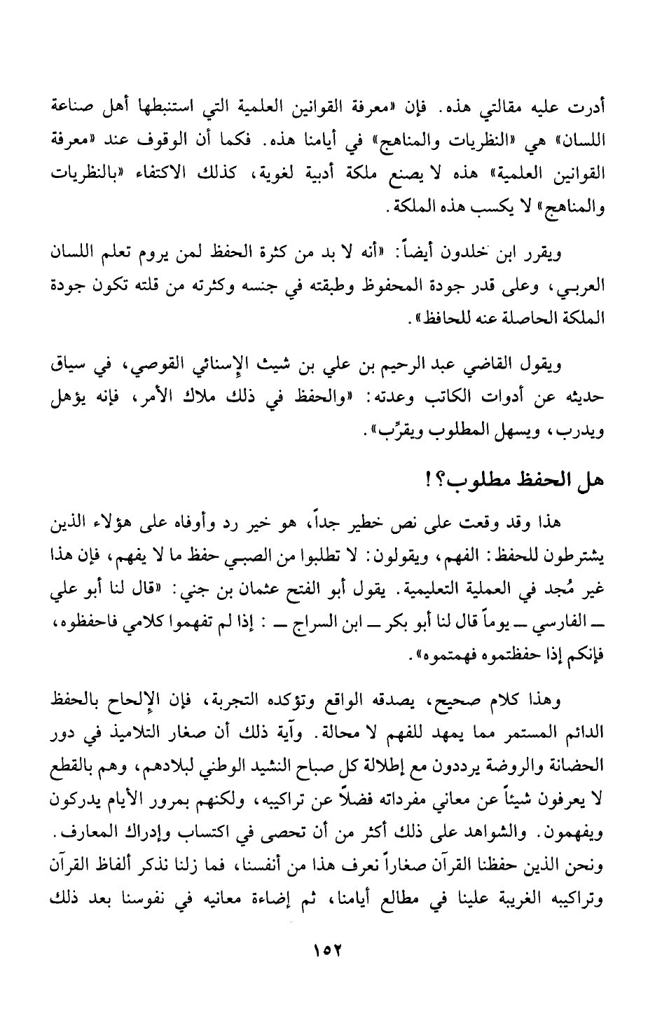 القوانين العلمية " هذه لا يصنع ملكة ادبية لغوية، كذلك الاكتفاء "بالنظريات
