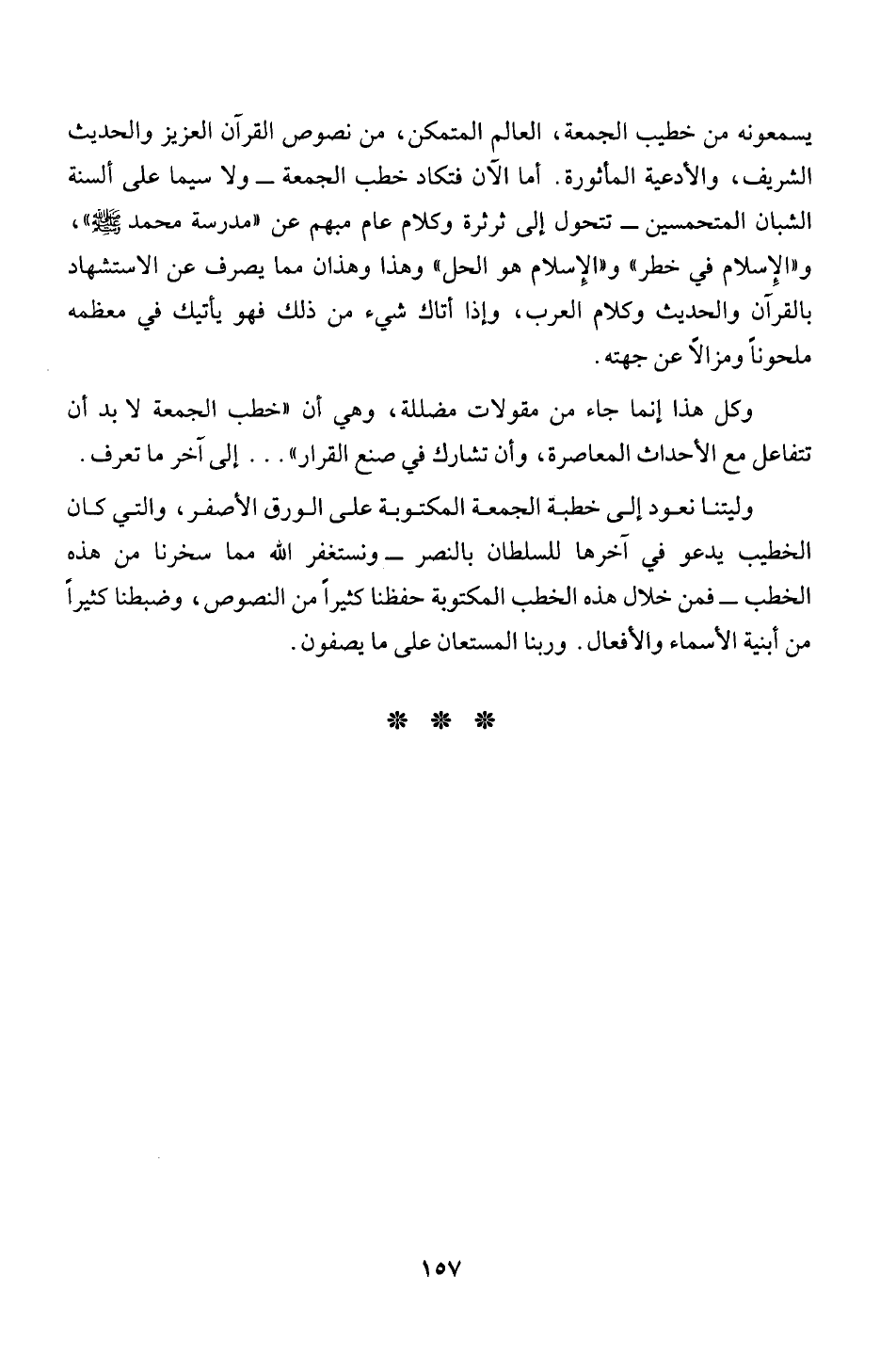 الشريف، والأدعية المأثورة. أما الَان فتكاد خطب الجمعة - ولا سيما على ألسنة