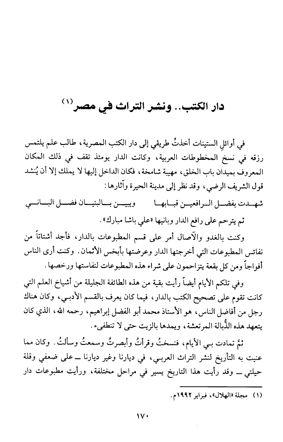(1) مجلة "الهلال"، فبرا ير 2 9 9 1 م.