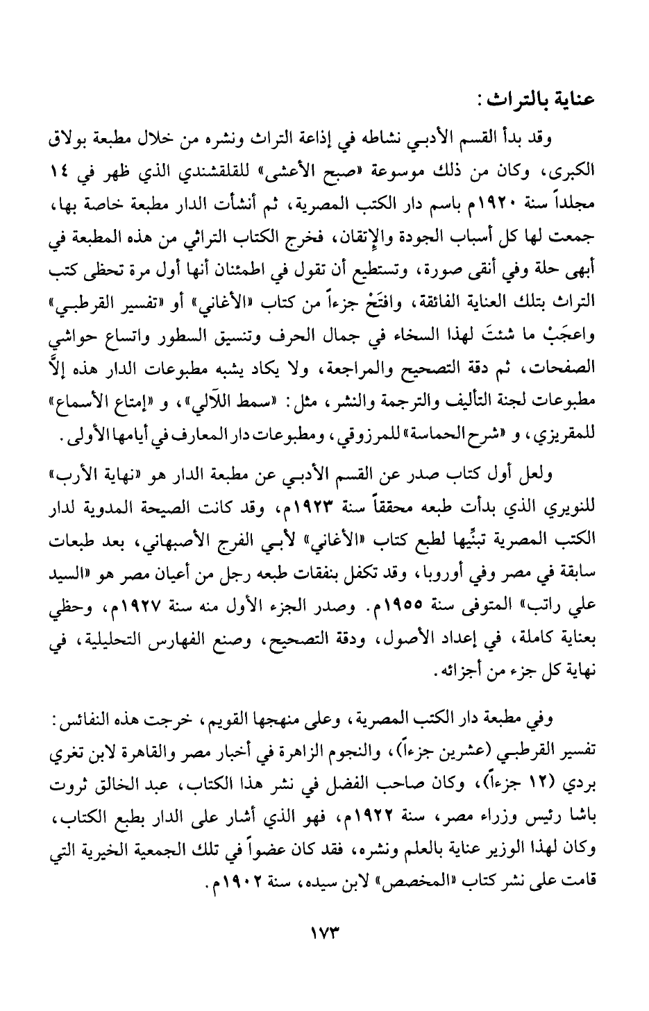 للمقريزي، و"شرح ا لحماسة " للمرزوفي، ومطبوعات دار المعارف في أيامها ا لأولى.