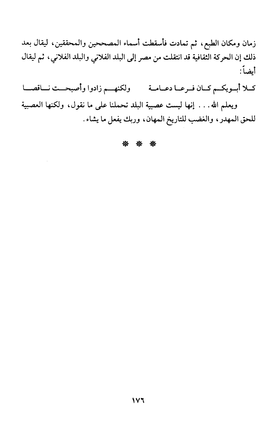 ويعلم الله. . . إنها ليست عصبية البلد تحملنا على ما نفول، ولكنها العصبية